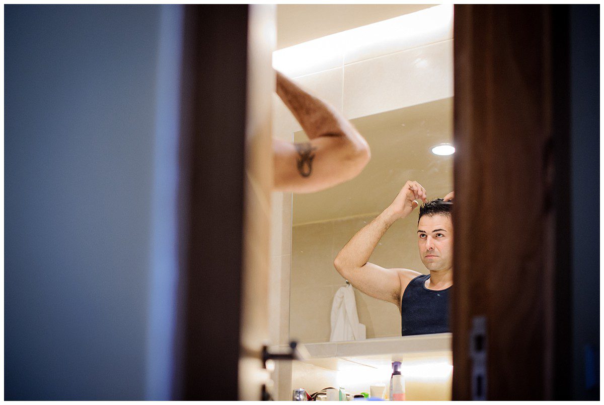 Comme il était important que leur vrai mariage se passe dans l’intimité et non durant la formation, j’ai donc tout d’abord photographier leur grande journée seule. J’ai eu ce grand privilège de pouvoir les accompagner tout au long de la journée, de les aider à se vêtir, de voir leur excitation, et d’assister à ce moment touchant.