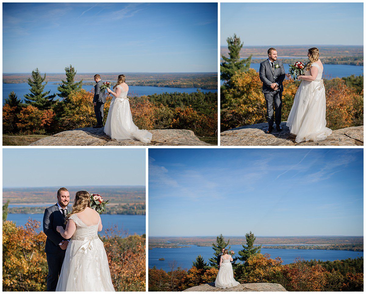 Cette vue impressionnante au haut de la montagne ne pouvait être plus parfaite pour faire leur »First look » avant la cérémonie. Ce fut magique!