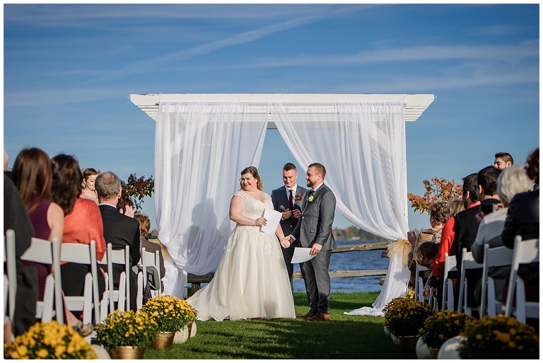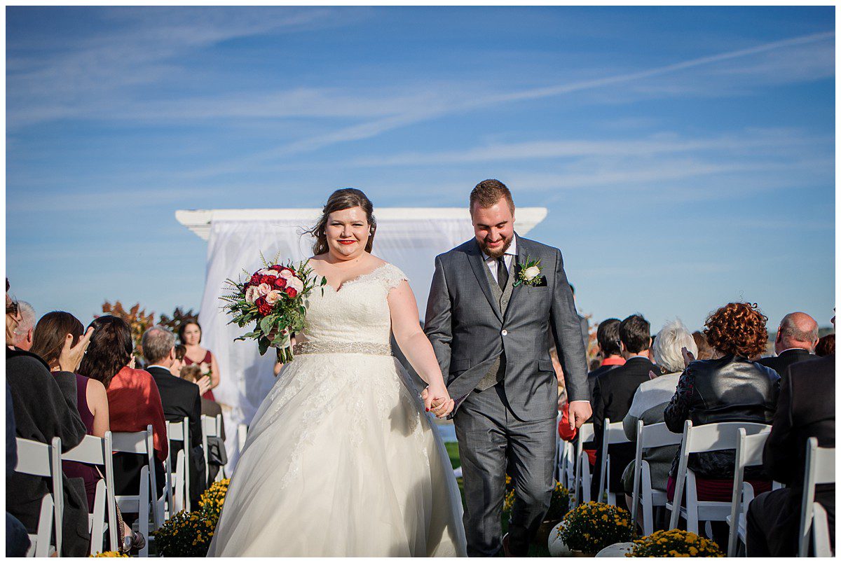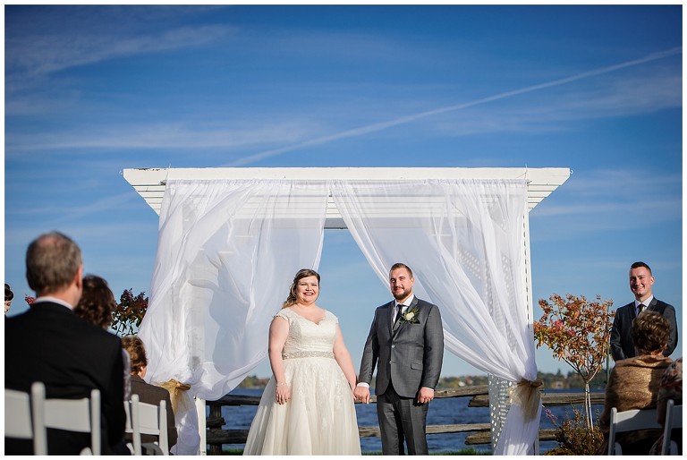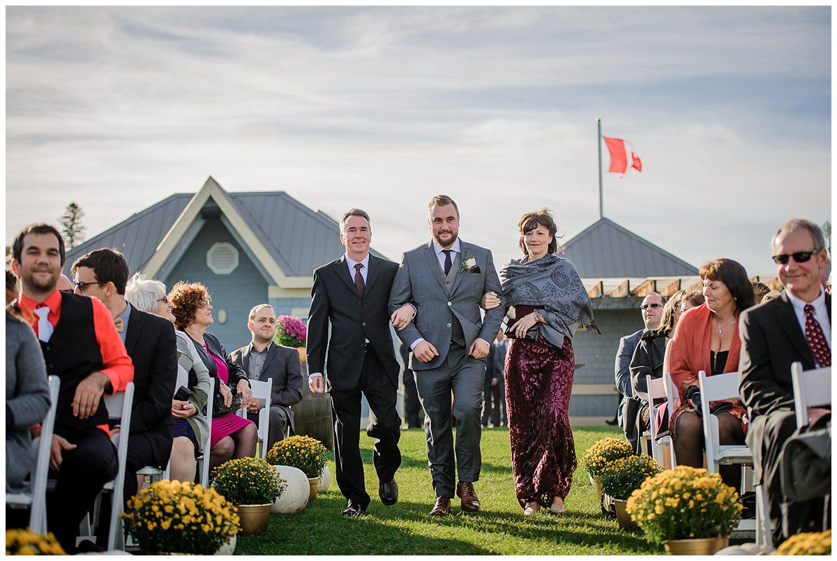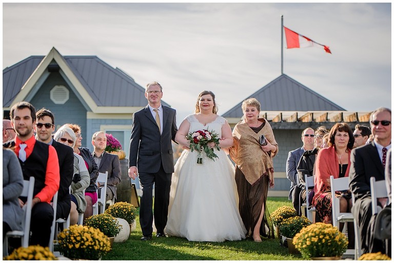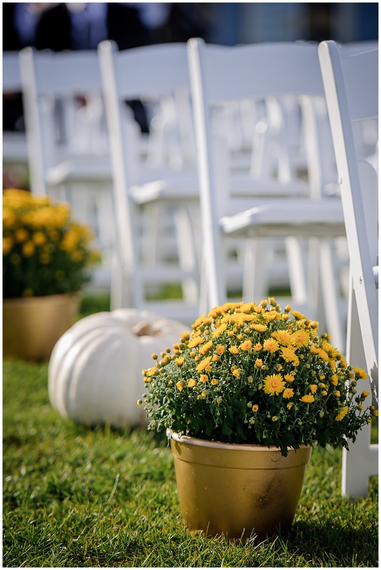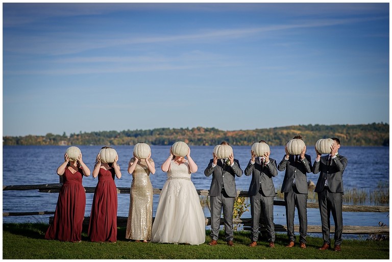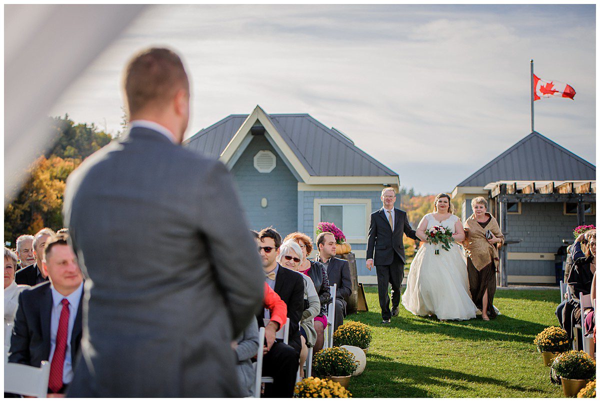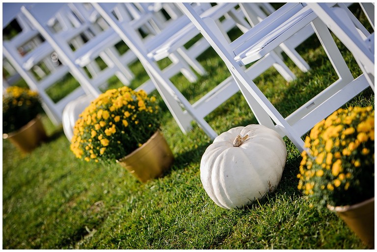 Tout était parfait! La belle température, le site extraordinaire, le superbe choix de couleur Bourgogne et or qui s’agençait si bien avec cette saison de l’année, les citrouilles blanches d’un chic fou, et que dire de ces magnifiques mariés et leur cortège!