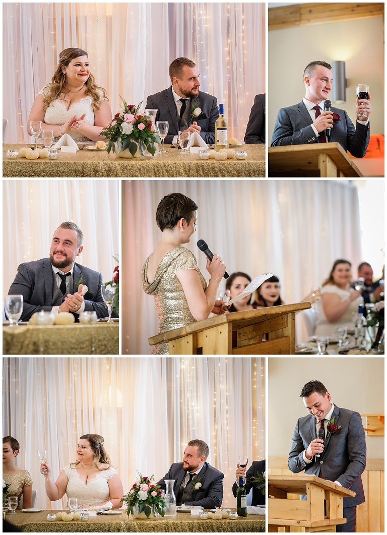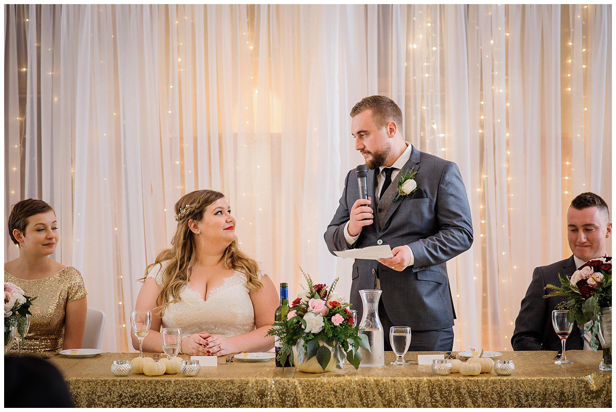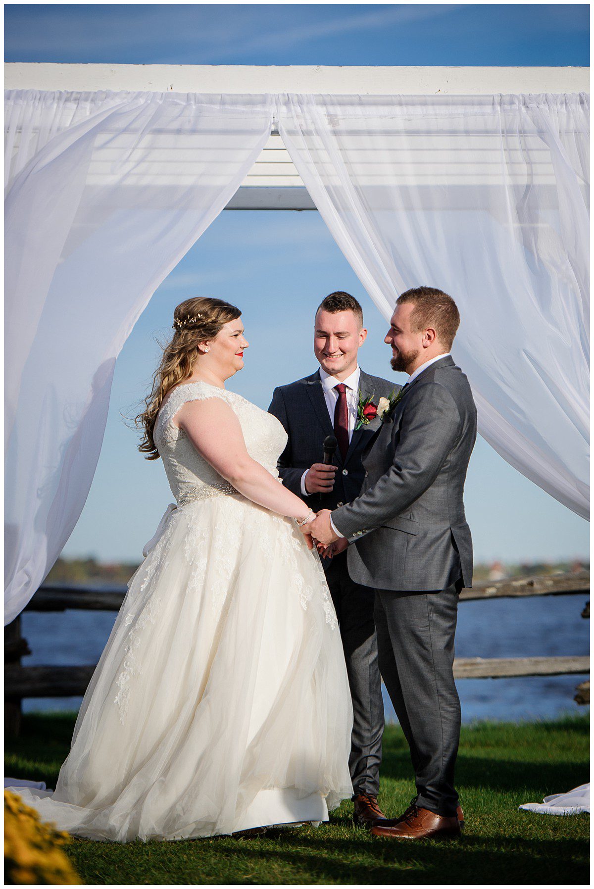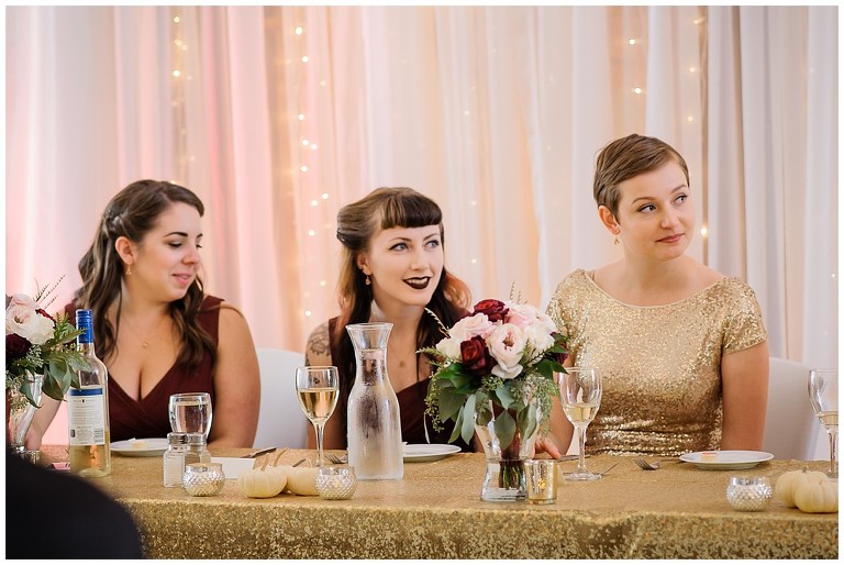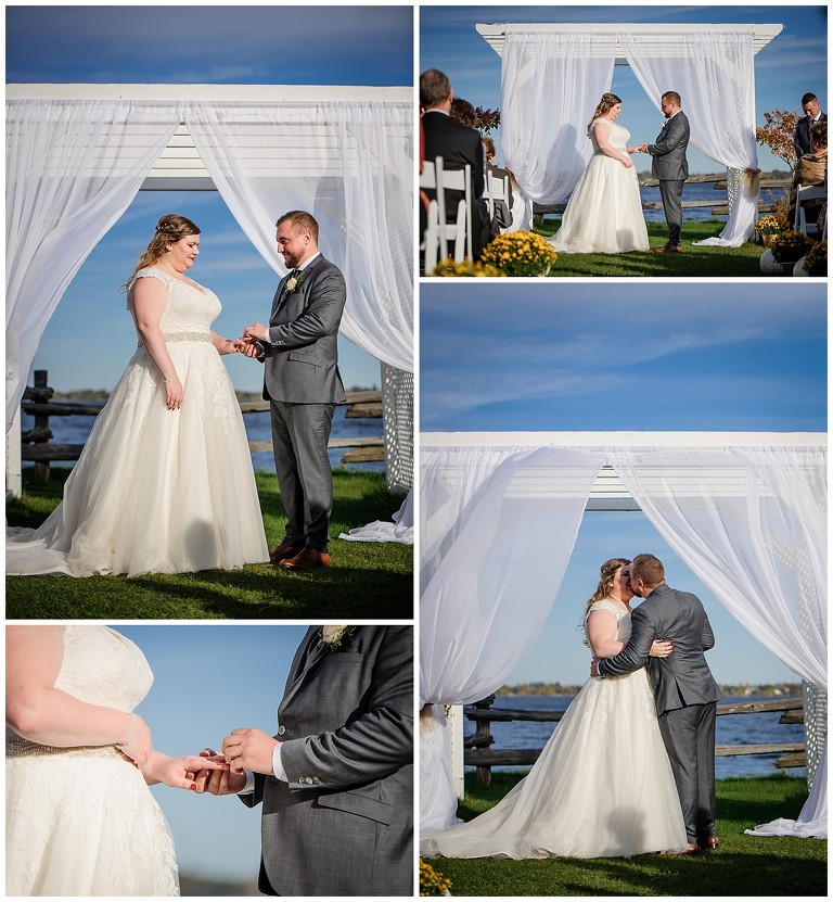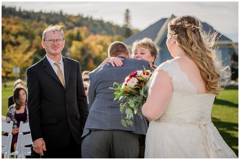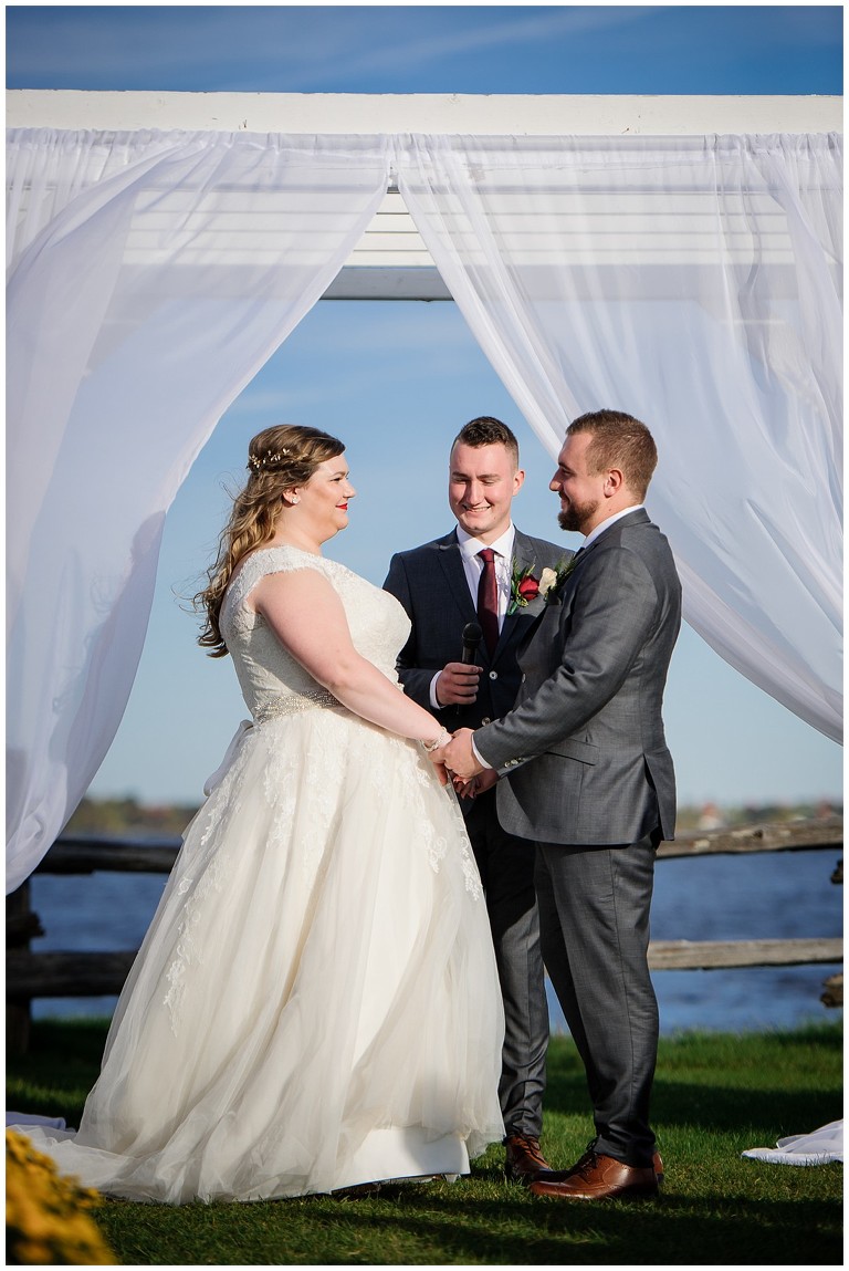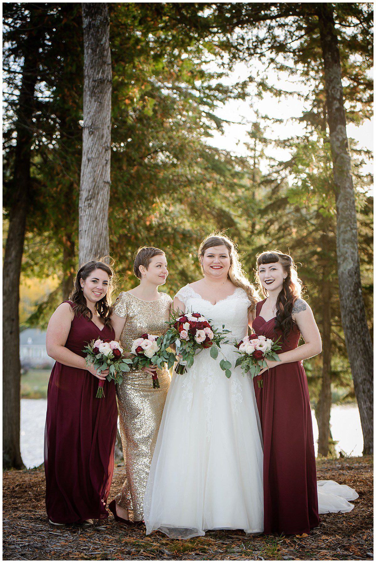 Tout était parfait! La belle température, le site extraordinaire, le superbe choix de couleur Bourgogne et or qui s’agençait si bien avec cette saison de l’année, les citrouilles blanches d’un chic fou, et que dire de ces magnifiques mariés et leur cortège!